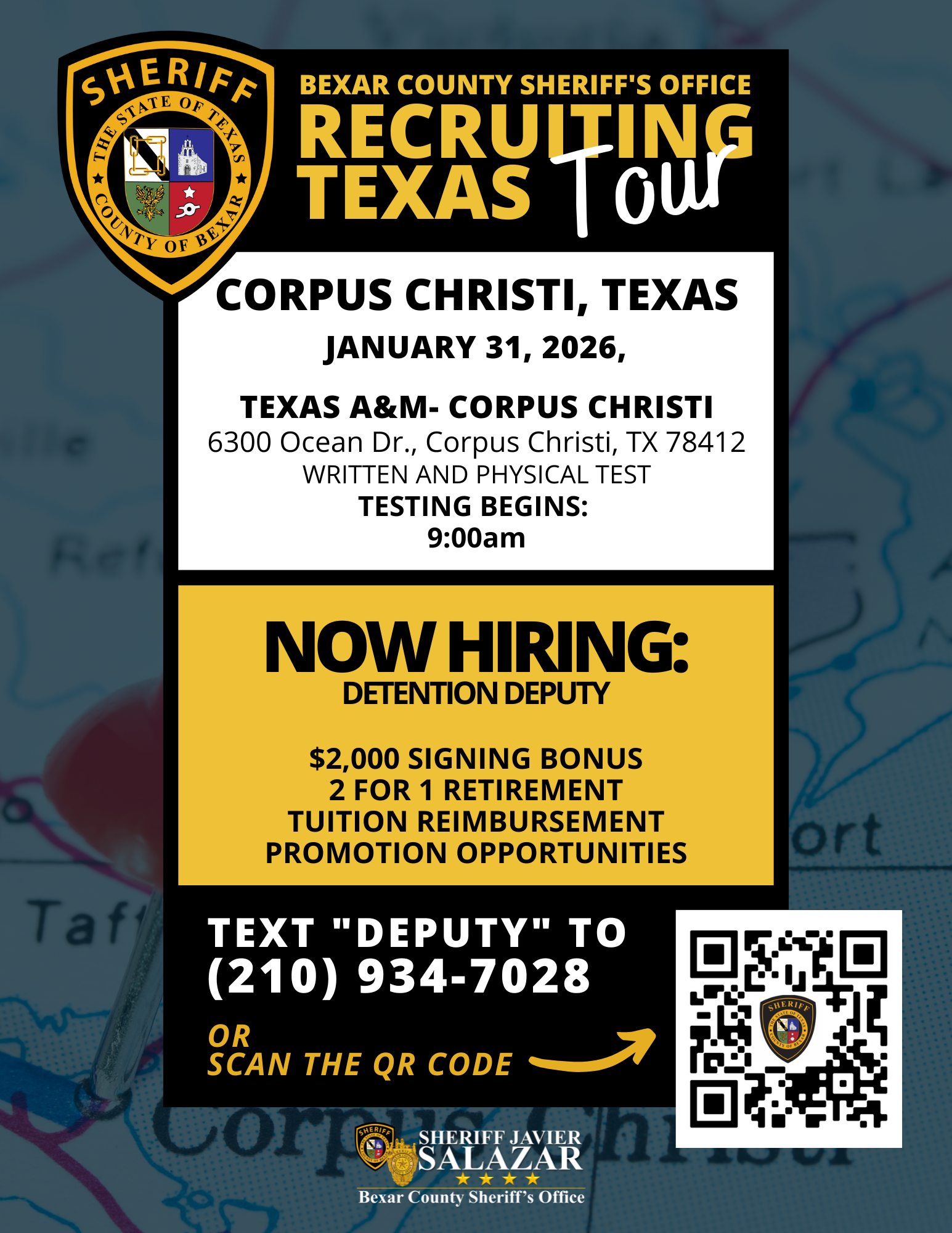 On Saturday, January 31, 2026, the Bexar County Sheriffâs Office Recruiting Team will make their first stop in Corpus Christi, Texas, as part of the âRecruiting Texas Tour.â